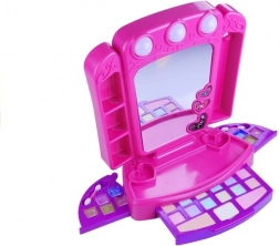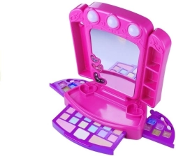 Una magica toeletta rosa‑viola per piccole vanitose offre ore di divertimento creativo. Dispone di specchietto funzionante con tre lucine, pratici scomparti per accessori, cassetto estraibile con colorati ombretto e fard e set laterali di lucidalabbra. Struttura sicura, forme arrotondate e dimensioni compatte sono ideali per bambini dai 3 anni in su.