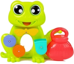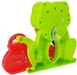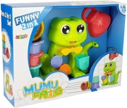 Rana colorata con elementi rotanti che fanno scorrere l'acqua e girare gli occhi.