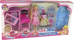 Un set magico per piccole stiliste include una bambola e una camera da letto completa: letto con piumino, armadio e toeletta con sgabello. Tutto in un delicato design rosa con coperta blu a stelline che favorisce il gioco creativo e fantasioso e insegna autonomia nel vestire e nella cura della bambola.
