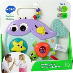 La balena interattiva unisce divertimento e apprendimento in un unico gioco. Durante il gioco i bambini allenano la coordinazione di entrambe le mani, la presa e la concentrazione. Gli stimoli sonori divertenti sono garantiti dalla tartarughina con sonaglino, la stella marina ruota attorno al proprio asse e altri elementi scorrevoli e rotanti con perline invitano all’esplorazione.