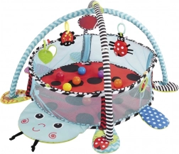 - Tappeto gioco a forma di coccinella, 2 archetti con giochi sospesi, 30 palline