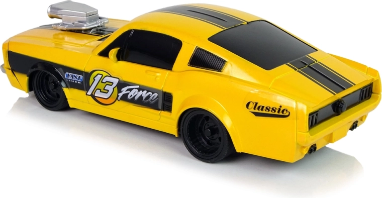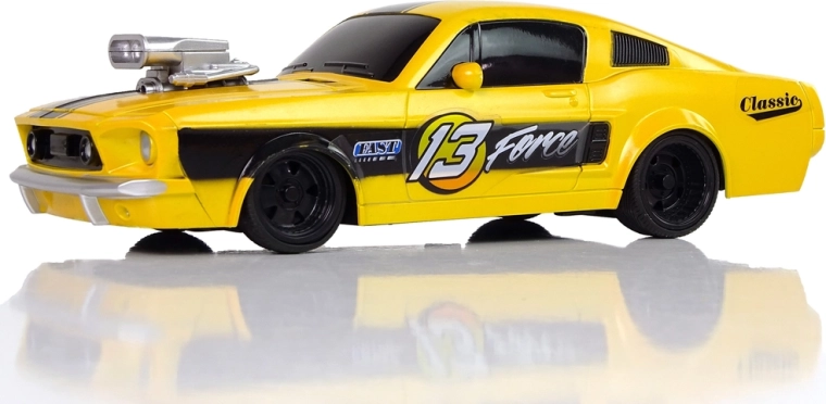 Il veicolo ha una struttura leggera e robusta, un design sportivo con una striscia nera sul tetto che aggiunge un tocco grintoso. Gli pneumatici in gomma garantiscono aderenza alla strada. La guida del veicolo è un grande divertimento soprattutto per i più piccoli, perciò il radiocomando incluso nel set permette di controllare il piccolo modello d’auto, con due pulsanti separati per avanzare/retrocedere e per sterzare.