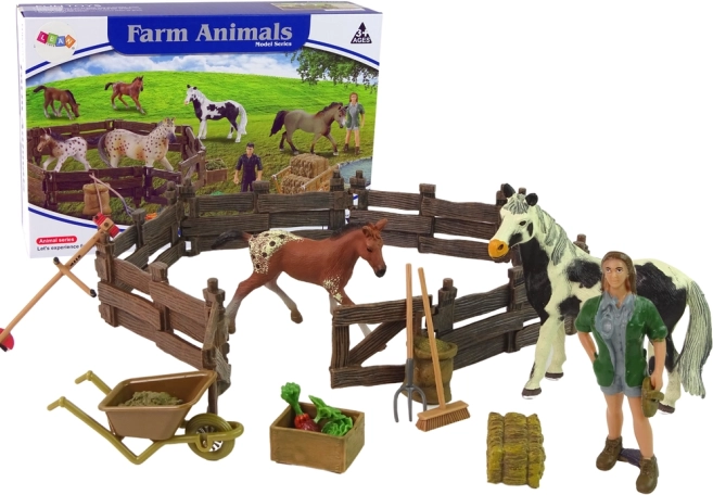 Costruisci ed esplora la tua fattoria, grazie alle realistiche figurine di cavalli e alla recinzione in legno. Questo set divertente consente al bambino di creare un luogo per prendersi cura dei cavalli e apprendere le basi dell'allevamento e delle attività quotidiane dell'agricoltore.