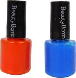 Il set include due smalti - uno di colore arancione e l'altro di colore blu, che donano alle unghie un aspetto vivace e brillante.