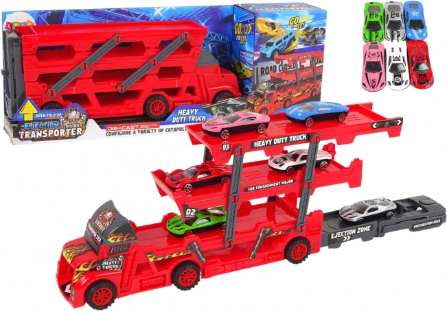 Grazie a questo camion, il giocatore può non solo trasportare piccole macchinine su tre piani mobili, ma anche utilizzare il lanciatore integrato per un gioco dinamico. Lo spazio aggiuntivo sotto la cabina permette alle macchinine di essere lanciate ad alta velocità, garantendo divertimento per il piccolo conducente. Pertanto, è ideale non solo per il gioco individuale ma anche per l'interazione condivisa con i genitori o i coetanei.