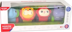 Con questo vivace set di macchinine a forma di animali i bambini vivranno ore di divertimento. Le palline colorate sotto la cupola trasparente creano effetti accattivanti durante il movimento, motivando a esplorare e a giocare. La struttura robusta in plastica di qualità assicura lunga durata e manipolazione sicura per i più piccoli.