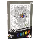 Immergiti nel mondo del divertimento creativo con 500 pezzi di puzzle in bianco e nero e 6 pennarelli per colorarli. Completa l'immagine di un elefante circondato da foglie e mettila in mostra come decorazione da parete o come sottopiatto.