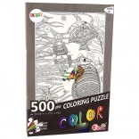 I puzzle da colorare offrono innumerevoli possibilità creative. Il set include 500 pezzi di puzzle in bianco e nero e 6 pennarelli, con cui puoi personalizzare l'immagine a tuo piacimento. Il puzzle mostra pesci nell'oceano, circondati da piante.
