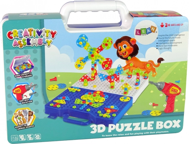 Costruisci i tuoi dinosauri 3D con questo divertente set di costruzione fai-da-te. Non mancano una pratica valigetta, un trapano giocattolo, un cacciavite e viti colorate. Sviluppa la creatività e la motricità fine, adatto per bambini 3+, conforme a CE e EN71.