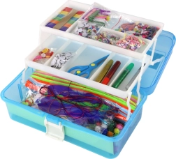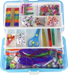 Presentiamo il nostro eccezionale set creativo fai da te, che aiuterà il tuo bambino a sviluppare la creatività e le abilità artistiche. Questo pratico set è confezionato in una bellissima valigetta blu estensibile, che non solo è gradevole alla vista, ma migliora anche lo stoccaggio e l'organizzazione dei materiali artistici.