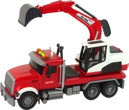 Il camion offre dettagli fedeli come porte, finestre, ruote e specchietti. Grazie alla trazione a frizione i veicoli si spingono facilmente e scorrono su diverse superfici. Il gioco favorisce la creatività, il roleplay di autista e operatore dell’escavatore e insegna il lavoro in cantiere.