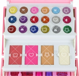 Per il massimo comfort durante il trucco, il set include pratici accessori come 3 pennelli rosa per ombretti, un pennello per il make-up e un pennello per sopracciglia. Nella confezione sono presenti anche accessori per la decorazione delle unghie: separatore cosmetico rosa glitterato e lima per unghie. I ciondoli 3D per unghie inclusi nella valigetta permettono decorazioni uniche e personalizzate.