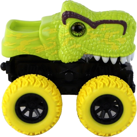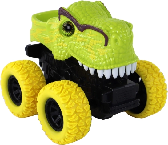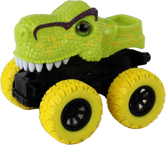 Scopri questo giocattolo unico - il monster truck dei dinosauri, che affascina non solo per il suo aspetto, ma anche per le sue capacità pratiche. Grazie alle grandi ruote in gomma ha un'ottima trazione, il che consente un uso facile su diverse superfici.