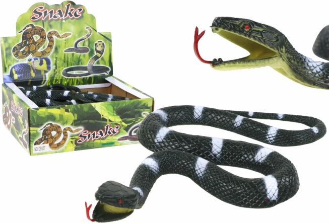 Il serpente di gomma nero con strisce bianche è un giocattolo ideale per i bambini, che possono divertirsi molto con esso. Inoltre, il suo design realistico e la struttura sicura senza bordi taglienti lo rendono uno strumento adatto anche per gli adulti, ad esempio come decorazione o articolo scherzoso. Questo serpente può essere utilizzato come strumento di creatività nella creazione di storie e giochi nel parco, in giardino o sulla spiaggia.