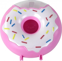 La custodia in plastica a forma di donut contiene tutti i cosmetici preferiti e, grazie alla catenella, si porta comodamente in viaggio o al parco giochi.