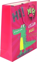 Borsa regalo in carta rosa con coccodrillo 32 × 26 × 10 cm