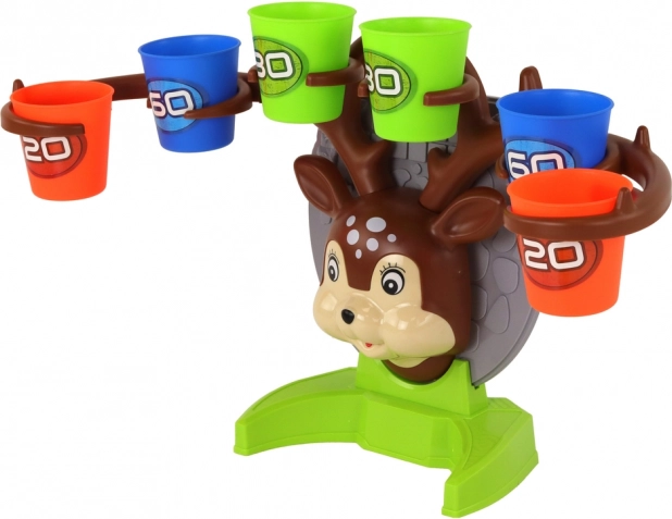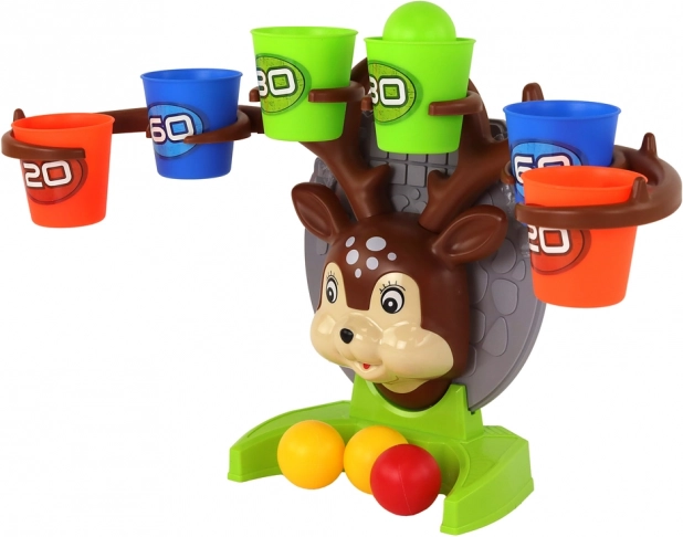 Assembla il tenero cerbiatto, prepara i bicchierini colorati con punteggio e inizia a giocare. L'obiettivo è far rimbalzare la pallina dal tavolo e centrare il bicchierino con il valore più alto possibile. I colori vivaci invogliano al gioco e allo stesso tempo sviluppano precisione, prontezza e motricità fine.
