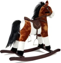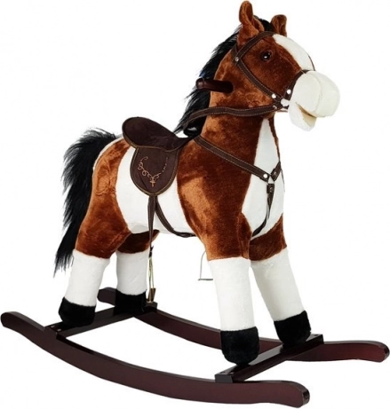 Il nostro cavallo a dondolo marrone scuro è realizzato in morbido materiale peluche che assicura comfort durante il gioco prolungato. Il cavallo è dotato di suoni realistici che si attivano premendo l’orecchio, animando l’atmosfera del Selvaggio West con nitriti e rumori di galoppo.