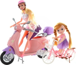 Scopri il grande set di bambole con accessori che offre ore di divertimento creativo. Include una bambola snodata da 30 cm, una bambola più piccola da 16 cm, un'auto rosa da 33 cm, uno scooter da 30 cm, una bicicletta da 17 cm, un'altalena, un cagnolino e accessori alla moda come cappello, casco e borsa. Realizzazione in plastica di qualità, confezionato in scatola regalo. Età 3+.