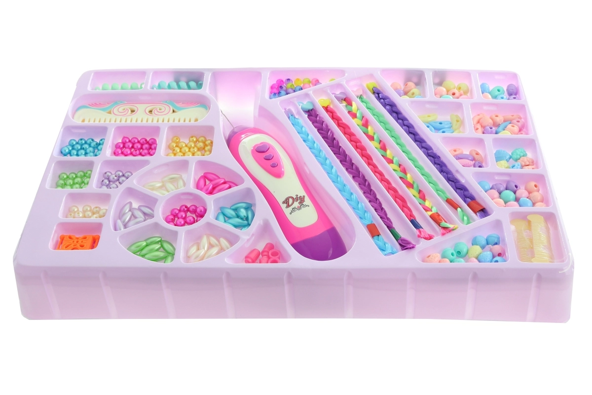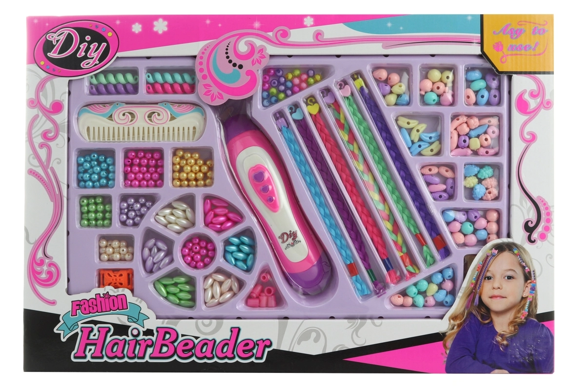 - Dotazione completa: intrecciatore, 5 treccine colorate, pettinino, molte perline.