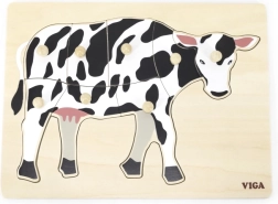 I bambini esercitano il riconoscimento delle forme e la denominazione degli animali. Il motivo in bianco e nero ad alto contrasto della mucca favorisce la concentrazione e un orientamento migliore.