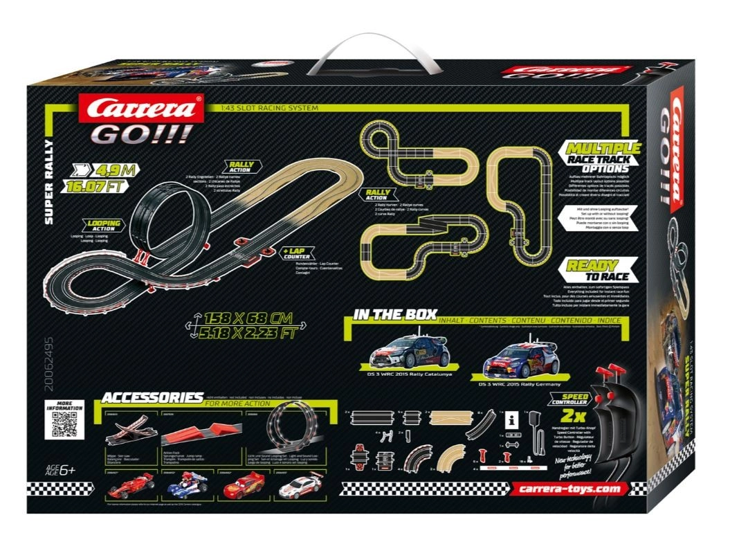 Entra nel mondo delle vere corse con la pista CARRERA GO!!! Super Rally. La combinazione di rettilinei veloci, impegnativo loop e curve strette garantisce divertimento intenso e un’esperienza competitiva per bambini e adulti. Scelta ideale per chi ama le gare dinamiche e vuole superare i propri limiti.