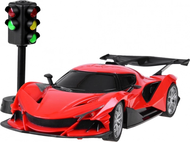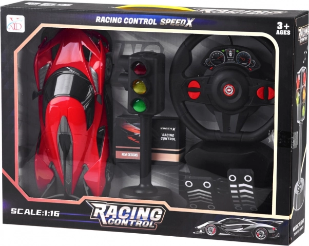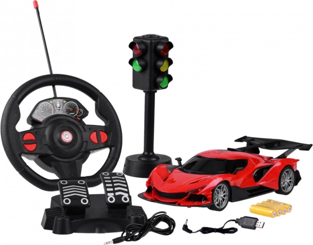 Auto sportiva RC con volante, pedali e semaforo 1:16 – Rosso