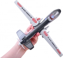 Posizionando il giocattolo su una superficie piana, si avviano le funzioni sonore e luminose. Sentirete suoni di decollo e funzionamento dei motori, spari, suoni di combattimento e la cabina e la coda si illumineranno. Il drone è progettato esteticamente con cura ai dettagli.
