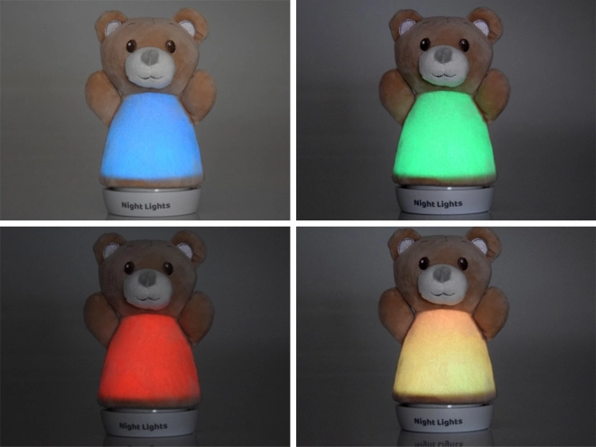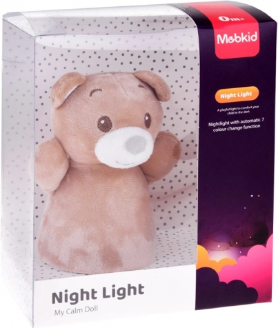 La semplice base stabile consente un posizionamento sicuro sul comodino o su una mensola. La luce cambia colore automaticamente (ad es. blu, verde, rosso, giallo) e crea un’atmosfera piacevole per bimbi e neonati. Il rivestimento in peluche è facilmente rimovibile e pulibile.