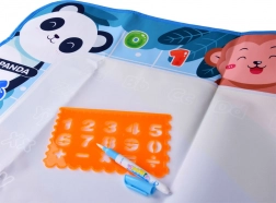 Questo tappetino colorato di dimensioni 98 x 78 cm ha uno sfondo vivace che trasforma ogni creazione in un capolavoro dipinto. I bordi del tappetino sono decorati con immagini di animali con nomi in inglese, permettendo ai bambini di imparare l'inglese giocando. Giocare è completamente sicuro – basta riempire il pennarello con acqua e iniziare a disegnare, dipingere o scrivere.