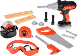 Il set include vari strumenti come un metro o viti e dadi che stimolano la creatività dei bambini durante i loro giochi.