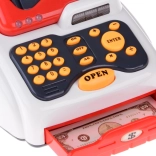 La cassa offre effetti sonori alla pressione dei tasti ed effetti luminosi grazie a tre LED colorati. Il cassetto portadenaro si apre premendo il tasto "open".