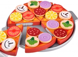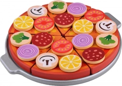 Questo set pizza in legno offre ai bambini la possibilità di diventare chef nella propria pizzeria. Con 27 pezzi in legno, inclusi diversi accessori colorati, i bambini possono creare e servire la pizza secondo la loro fantasia. I pezzi di pizza sono collegati con velcro, permettendo un facile taglio e riassemblaggio.