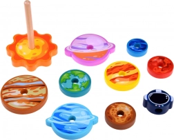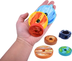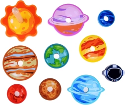 I dischi rappresentano i pianeti e la base rappresenta il sole, rendendo il puzzle un'esperienza straordinaria che sviluppa la creatività dei bambini.