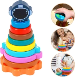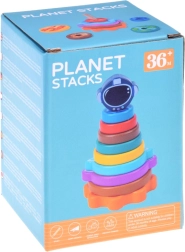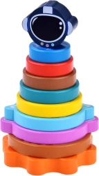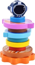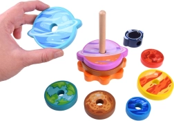 Il puzzle in legno con tema spaziale è il giocattolo ideale per i bambini che amano scoprire nuove cose e migliorare le proprie abilità manuali. Grazie a questo puzzle, i bambini imparano a ordinare i dischi per dimensione, dal più grande al più piccolo, e la piramide è coronata da un pezzo a forma di casco da astronauta.