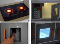 Componenti mobili come manopole, porte, pulsanti e orologi favoriscono lo sviluppo della motricità fine e della coordinazione dei movimenti.