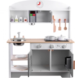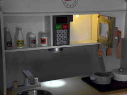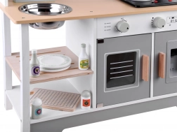 Questa cucina per bambini è esteticamente studiata e garantisce non solo un grande divertimento, ma contribuisce anche allo sviluppo del bambino. I bambini amano imitare gli adulti e questa cucina permette loro di fingere di cucinare, pulire e svolgere altre attività domestiche.