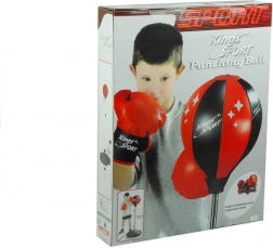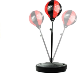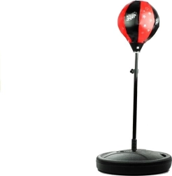 Il pungiball è posizionato su una molla, fissata su un palo d'acciaio regolabile. I guantoni includono uno strato ammortizzante e sono di dimensioni universali. Il set è in un classico design nero e rosso ed è realizzato con attenzione ai dettagli in materiali di alta qualità. La costruzione è sicura e ha il certificato CE.