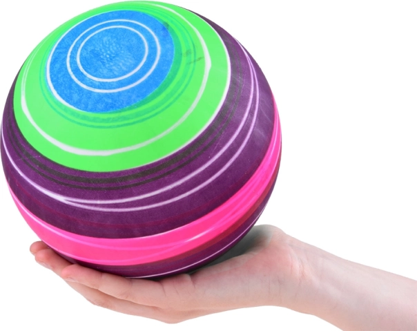 La palla ha colori arcobaleno vivaci che attirano sia i bambini che gli adulti.