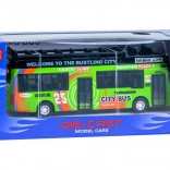 Elegante autobus a due piani in metallo che farà felici piccoli autisti e passeggeri. Grazie al meccanismo pull-back, alle porte scorrevoli apribili, agli effetti luminosi e ai suoni del motore, offre un divertimento realistico a casa e in viaggio. Carrozzeria in metallo e lavorazione accurata garantiscono resistenza e lunga durata del giocattolo.