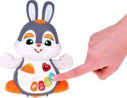 Caratteristiche:- Musica e luci: Il coniglietto balla al ritmo di canzoni allegre e lampeggia con luci colorate, stimolando i sensi del bambino e aggiungendo divertimento.