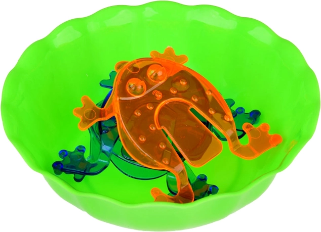 Le colorate ranocchie di plastica si fanno scattare facilmente con un dito per mandarle dritte nella ciotola. Ideali per gare veloci e per allenare la destrezza.