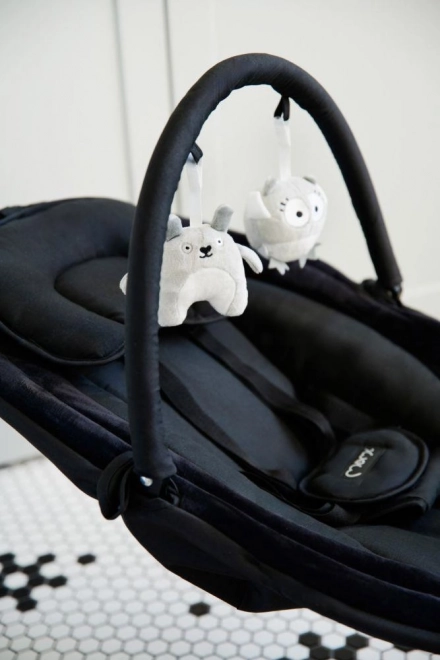 L’altalena KENANI Onyx è la versione scura ed elegante della nostra altalena, dotata di cinture di sicurezza a 5 punti, modulo Bluetooth e display LCD. Grazie al morbido cuscino in peluche e ai giochi posizionati sull’archetto, piacerà sicuramente al tuo bambino.