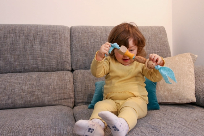 Il bruco sensoriale MILANIWOOD è progettato per un’esplorazione naturale e sperimentale. Combina cinque elementi in legno naturale di forme e texture diverse con parti tessili morbide per ricchi stimoli tattili. Il design minimalista e le tonalità naturali rasserenano e concentrano l’attenzione del bambino su movimento, suono e tatto.