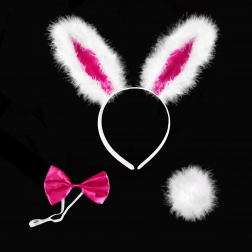 - Cerchietto con orecchie da coniglio, papillon rosa con elastico, coda con spilla