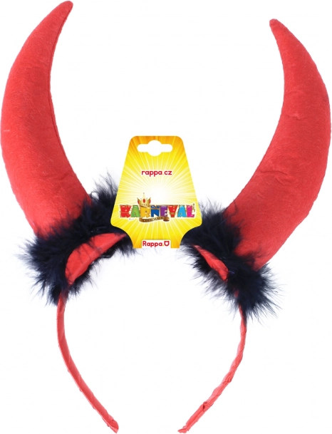 Corna da diavolo in versione maxi su cerchietto satinato in feltro, decorate con morbide piume. Un accessorio perfetto per il costume da diavolo o diavolessa – comodo da indossare, effetto immediato e stile impeccabile.