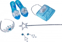Trasforma tua figlia in una principessa del Regno Invernale con questo incredibile set! Include tutto ciò di cui una piccola principessa ha bisogno: scarpine, borsa, cerchietto, corona, orecchini e bacchetta.