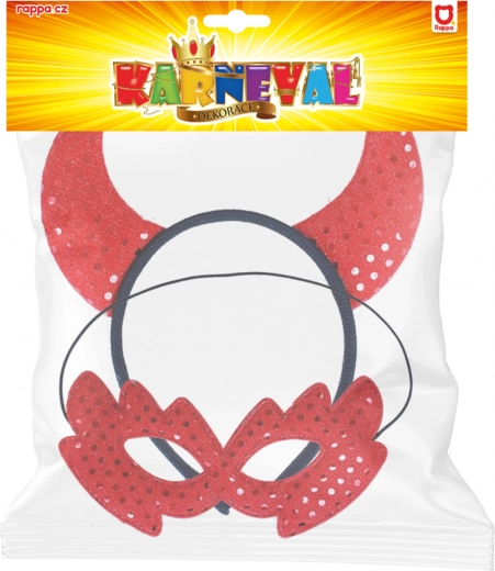 Il kit perfetto per ogni diavoletta! Questo set alla moda include un cerchietto con corna rosse scintillanti e una mascherina coordinata con paillettes. Ideale per carnevale, Halloween e feste a tema: completa qualsiasi costume e dona un look misterioso e giocoso.