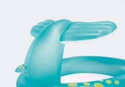 Adorabile piscina gonfiabile a forma di balena con doccetta integrata, offre ai bambini freschezza e tanto divertimento nelle giornate calde. La doccetta nella coda si collega facilmente al tubo da giardino e crea una delicata pioggia d’acqua. La piscina ha un volume di circa 200 l con livello dell’acqua a 18 cm, è dotata di valvola di scarico e si distingue per il design colorato e realistico che massimizza il divertimento dei giochi d’acqua.