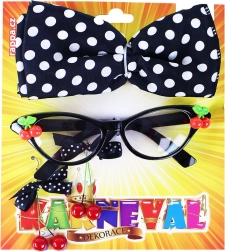 Aggiungi un tocco divertente al tuo stile con il set retrò di accessori con ciliegie! Il set include occhiali decorati con ciliegie, orecchini con ciliegie e un elegante foulard a pois.